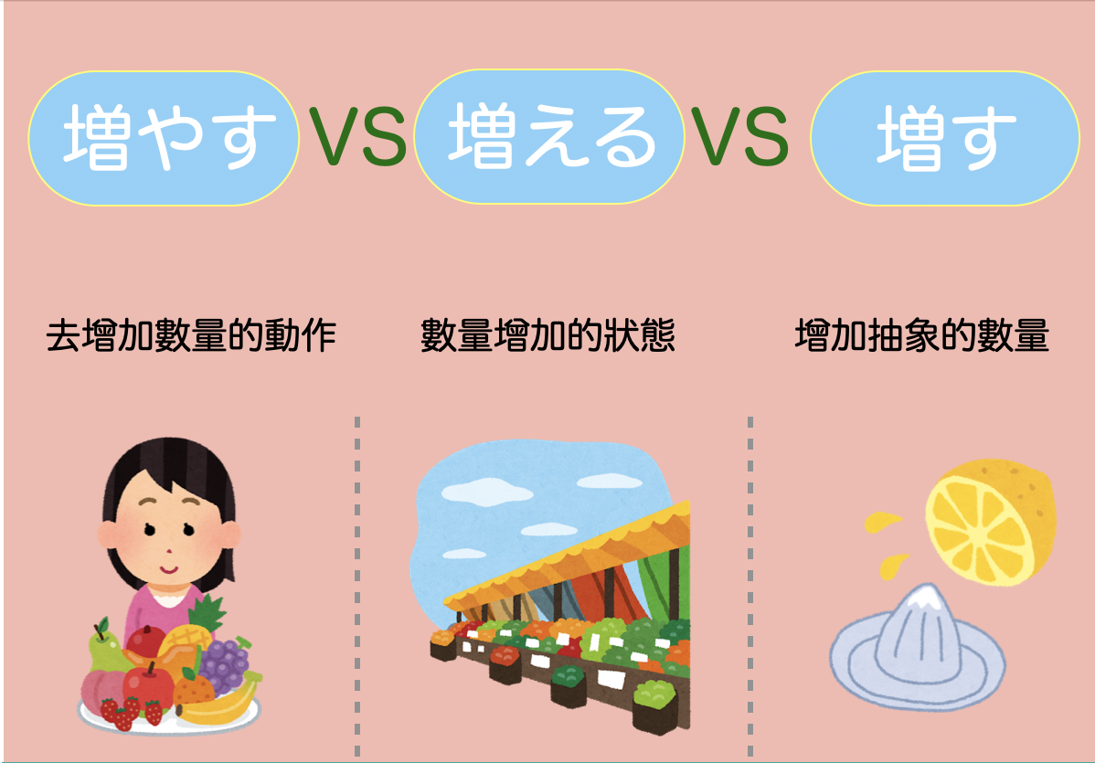増やす、増える、増す的用法、中文意思和分別